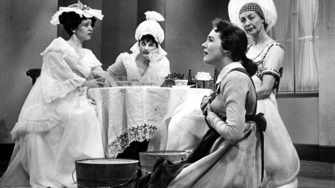 This TV musical is a product of a totally different era. It was initially written by the masters of the genre, Rodgers and Hammerstein, specifically for television. It was then performed live on CBS, once, in March 1957. The audience was massive: 107 million viewers saw some part of the show, at a time when the entire population of the United States was only 172 million. [The most-watched scripted broadcast in 2024? Under 12 million.] That was it. All the effort – 56 performers, 33 musicians, 80 stagehands/crew – for what was basically a one-night televisual stand. The production was thought lost for decades, until a recording taken off a video monitor, was found in 2002. It’s actually a dress rehearsal, not the live transmission itself, but is more than good enough.