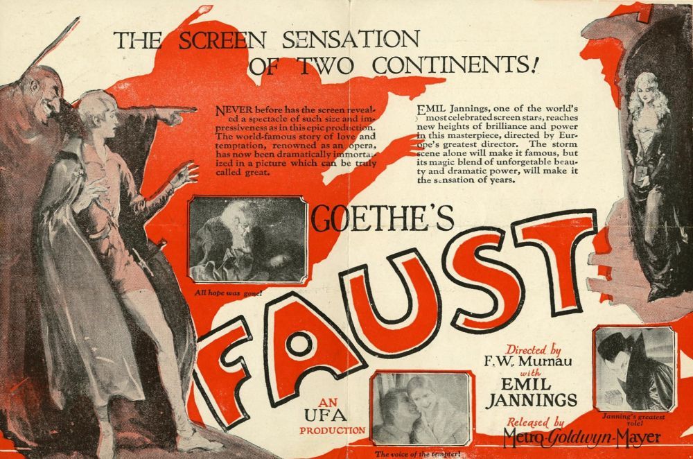 Murnau wasn’t first as far as cinematic adaptations of the story goes. At the very beginning of film, French pioneer Georges Méliès made several such movies, including Faust and Marguerite (1897), Damnation of Faust (1898), The Condemnation of Faust (1903), and Faust and Marguerite (1904). These gradually became longer and more complex. The last named runs for fifteen minutes, being a condensed version of Charles Gounod’s opera, with Méliès himself playing the role of Mephistopheles. Murnau draws both on Goethe’s telling of the story as well as other versions in what was, at the time, the most expensive movie made by production company UFA. That will tend to happen when you hire a winner of the Nobel Prize for literature, Gerhart Hauptmann, to write your intertitles, pay him 40,000 RM (the equivalent of almost $10,000 at the time) – then decide not to use them.