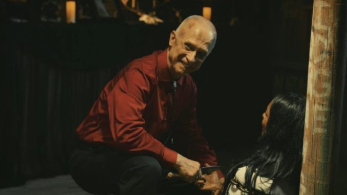 Certainly, we know more than Chloe. So rather being brought along on the journey as she seeks to uncover the mysteries behind Kathy’s abrupt departure, we’re left waiting for her to catch up. A year later, she gets a clue when she learns about a cabin in the Ozarks, and despite the disapproval of Ken, heads there with her girlfriend Ava (Disney). Stepdad follows them a bit later, and by the time he arrives, the women have already found a helpful occult tome related to the demon Malphus. Cult leader Julian (Doss) then shows up, and fills in the blanks. Kathy knew her new-born daughter had the traits needed to be part of a ritual to summon Malphus, and vanished rather than have that happen.