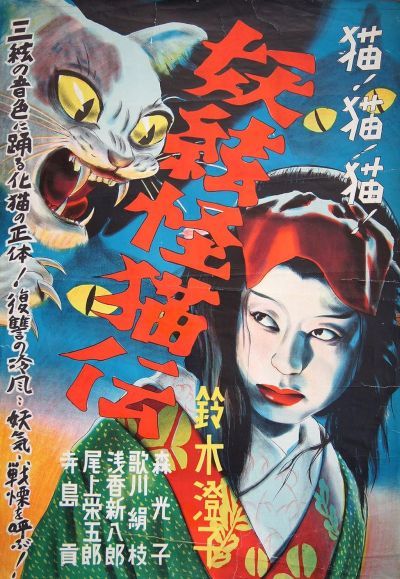 I was wondering whether I’d end up writing about J’Accuse, when I watched Ghost Cat, and fell upon it like a man in the desert on a 48-oz. Thirstbuster: good enough for the job, and you’re not going to complain if it’s grape Shasta. It, too, was considered lost for decades, before showing up unexpectedly around 2011 – it still has only 126 IMDb ratings. Director Ushihara supposedly went to Hollywood in the twenties and worked under Charlie Chaplin for a year, though safe to say you couldn’t tell from this. Instead, it is an entry in the “ghost cat” genre of Japanese horror known as Kaibyō; big at the time, and intermittently since Cinematically, the field began with 1910’s Saga no yozakura (Night-Blossoms of Saga), in which a cat develops a lust for vengeance, after drinking the blood of someone who committed suicide.