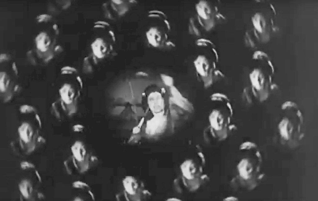 That the film survived at all is a blessing, but time has not done it any favours, with the print not in the best of condition, and the audio track particularly rough. Mind you, given sound had been a thing in Japanese cinema for less than a decade at this point; it was never exactly Dolby Atmos. Good enough to get the point across is how it can be described. I do think, the story drags badly in the middle, from the time where the basic idea is established, through to when you realize this theatrical experience is going to deliver an unexpected twist. Ushihara then dials up the style meter, with some disconcerting visuals (above) which prove surprisingly effective.