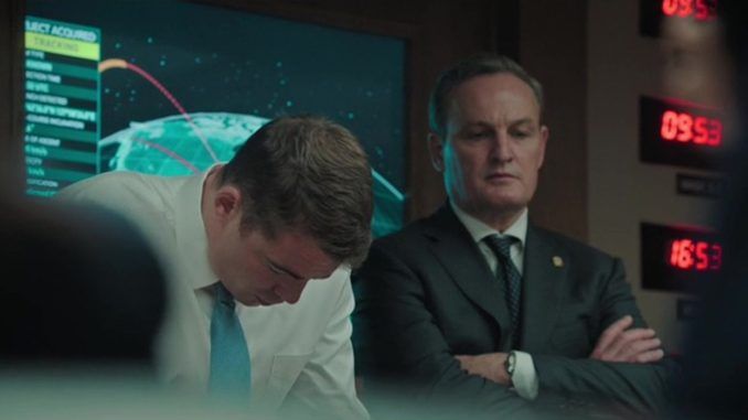 This takes matters considerably more seriously, needless to say. Though I was amused to note how many foreigners are running the American government, including Harris as Secretary of Defense Reid Baker, and Ferguson as Captain Olivia Walker, oversight officer for the White House Situation Room. Much as in the similar Fail Safe, hawks and doves battle over how to respond. Would waiting to ascertain the identity of the attacker, potentially signal weakness and open a window for opportunistic attack? General Anthony Brady (Letts) favours a robust response, while Deputy National Security Advisor Jake Baerington (Basso) – thrown in at the deep end because his boss is zonked out on propofol – tries to de-escalate matters.