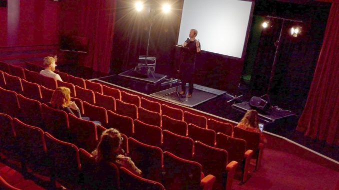 My reaction probably leans more toward the former, because it certainly is painfully pretentious – to be fair, I suspect deliberately so. It takes place during the COVID lockdown, and a focus group of actors is hired, and brought to a theatre, supposedly to provide insight into the arts industry’s response to the pandemic. The main one is Melody (Hayes), a non-actress, only attending as a replacement for her flatmate, Maddie (Kemish), who has a Zoom audition she can’t skip. Running the event is Ben (Patient), a director startlingly full of his own importance to Zeppelin-like levels, and is as interested in casting for his own film, The Mist, as the official purpose of the workshop.