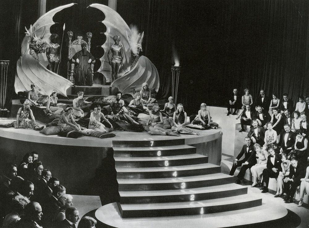 Jim Kirkham (Hale, the Harold Lloyd-looking mo’fo) has dreams of heading off to Africa with fiancée Eve Martin (Todd), to search for a lost civilization, much to the chagrin of his Uncle Joe (Jennings). But before he can achieve this ambition, he and Eve are kidnapped as they try to flee a robbery attempt. The young couple are brought to a mysterious house, inhabited by a veritable laundry-list of partying weirdos and degenerates – I can’t help feeling this was a significant influence on Rocky Horror. Jim tries to find a way to escape, but is confounded at every turn, eventually being brought in front of the house’s hooded master. Could it be… Satan? Our hero then has to negotiate the titular obstacle (below), which looks to have strayed in from a seventies game-show – only, with his very survival the prize, rather than a set of steak knives.