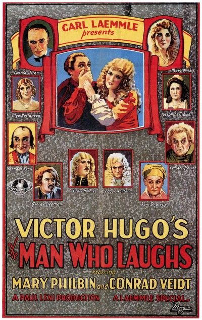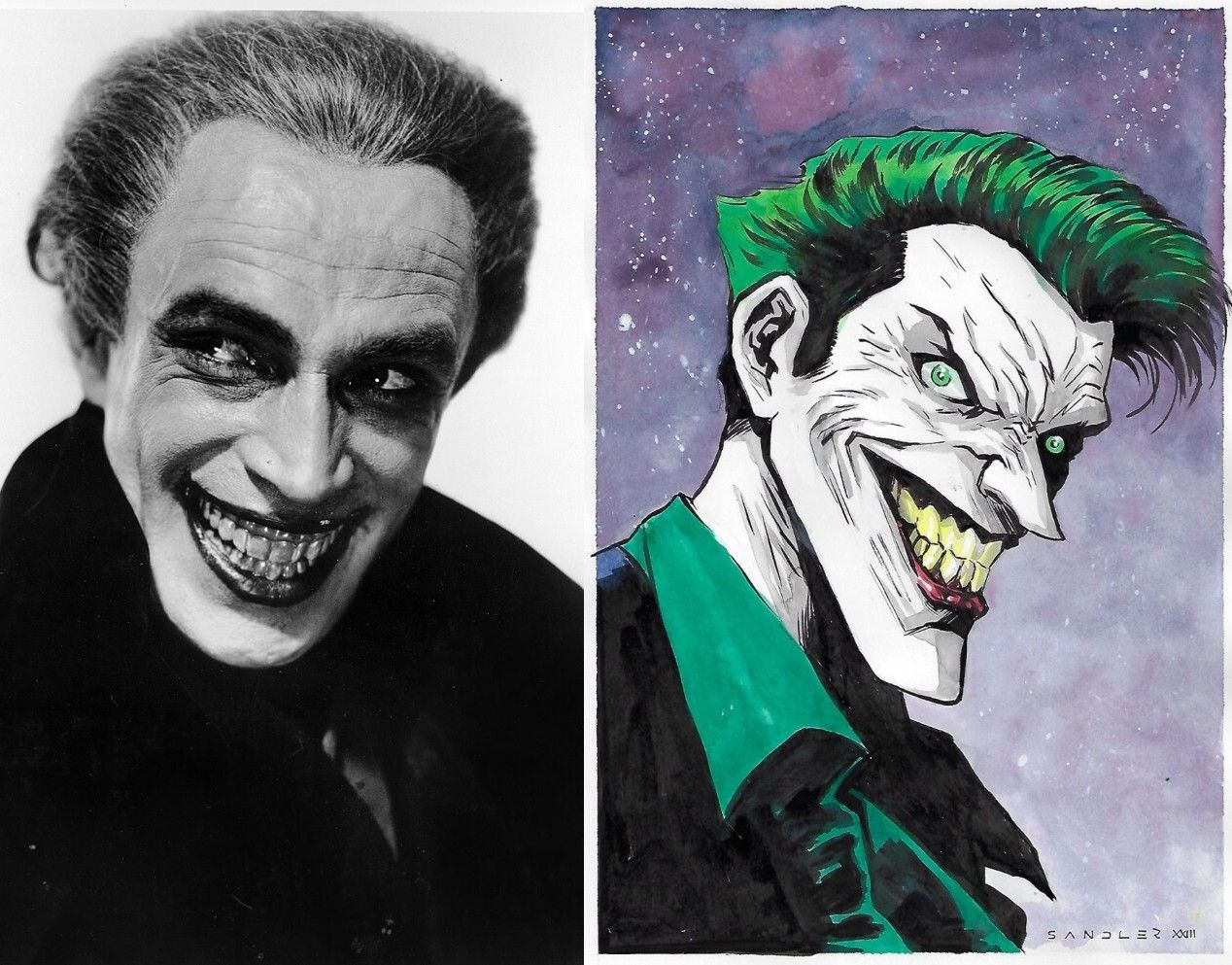 The Man Who Laughs it is then: no sound, but it has survived, in a rather decent print as well. If the film itself has largely been forgotten, compared to other classics of the silent era, its impact on popular culture exceeds many of its contemporaries. For its central character, the surgically disfigured Gwynplaine, was undeniably a significant influence on one of the best-known comic-book characters of all time: Batman’s nemesis, The Joker. While creators Bill Finger, Bob Kane, and Jerry Robinson disagree on the details of the character’s conception, they all agree that his look was inspired by a still from the movie. The similarity is obvious (below), and was explicitly acknowledged in the title of 2005’s graphic novel, Batman: The Man Who Laughs.